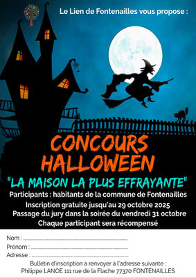Vendredi 31 octobre : Halloween : activités créatives pour les enfants organisées par la Mairie et concours Halloween organisé par Le Lien de Fontenailles.
