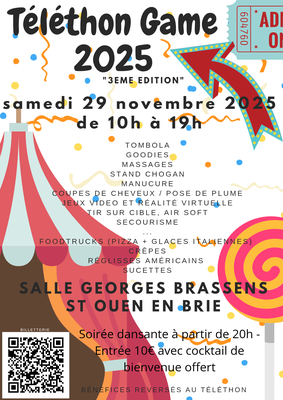 Samedi 29 novembre : Téléthon Game 2025 (voir flyer ci-dessous) organisé par des bénévoles dont Aurore Compain.